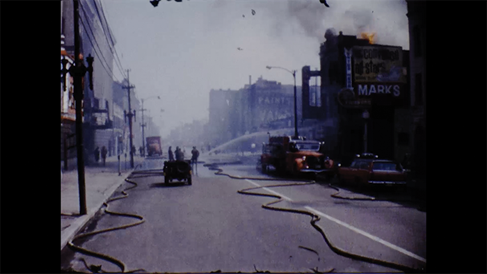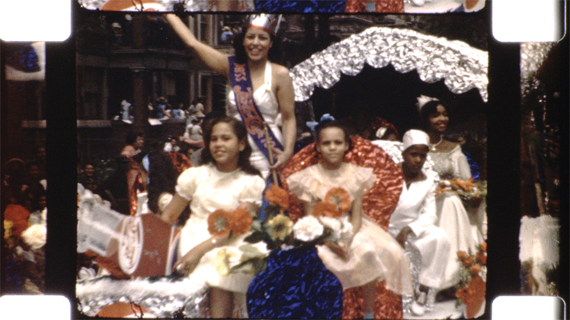 A 1950s float at Chicago’s historic Bud Billiken Parade from the Ramon Williams Collection. Williams, an electrician and amateur filmmaker, documented life in Bronzeville from the 1940s to the 1960s. In 2020 the South Side Home Movie Project received over 300 reels of film shot by this “citizen with a camera”—the project’s largest-ever donation. (From the Ramon Williams Collection, courtesy of the South Side Home Movie Project, an initiative of Arts + Public Life at the University of Chicago.)