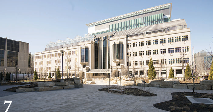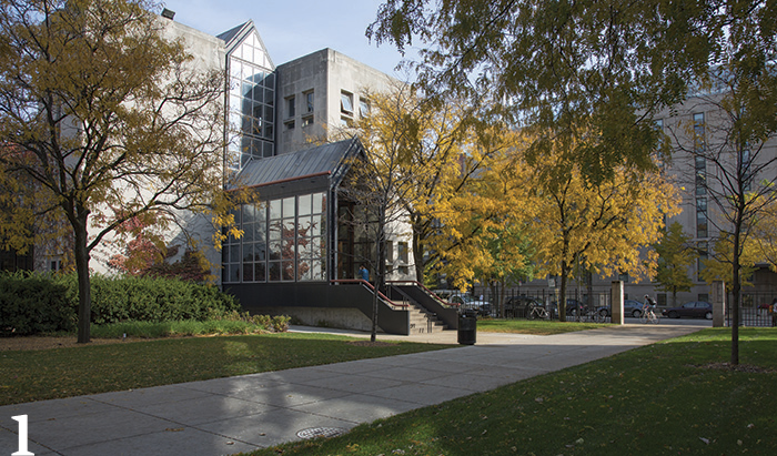 Your challenge: Match the campus building’s abbreviation to its photo—and make it to class on time. (Need a hint? You can find full names for each building below. NB: One archway leads to two buildings.)
